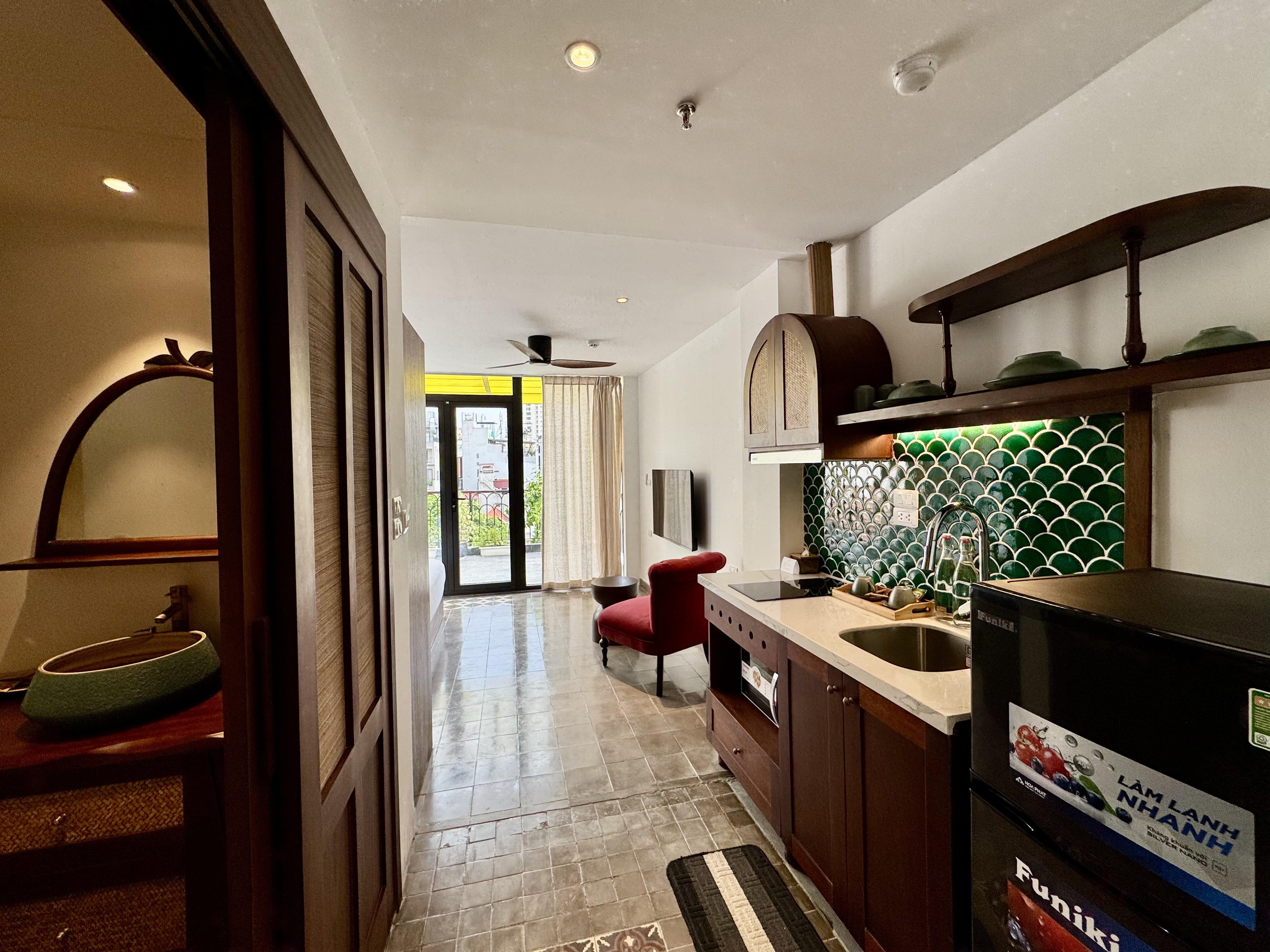 It’s close to Ho Chi Minh Mausoleum, near to local market of Chau Long, banks, bars